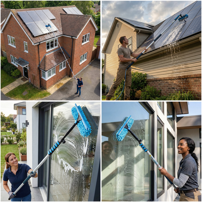 You want clean upstairs windows and solar panels, but not at the cost of wobbling ladders or calling in favours. IGAD lets you clean safely from the ground using extendable poles and professional-style tools.