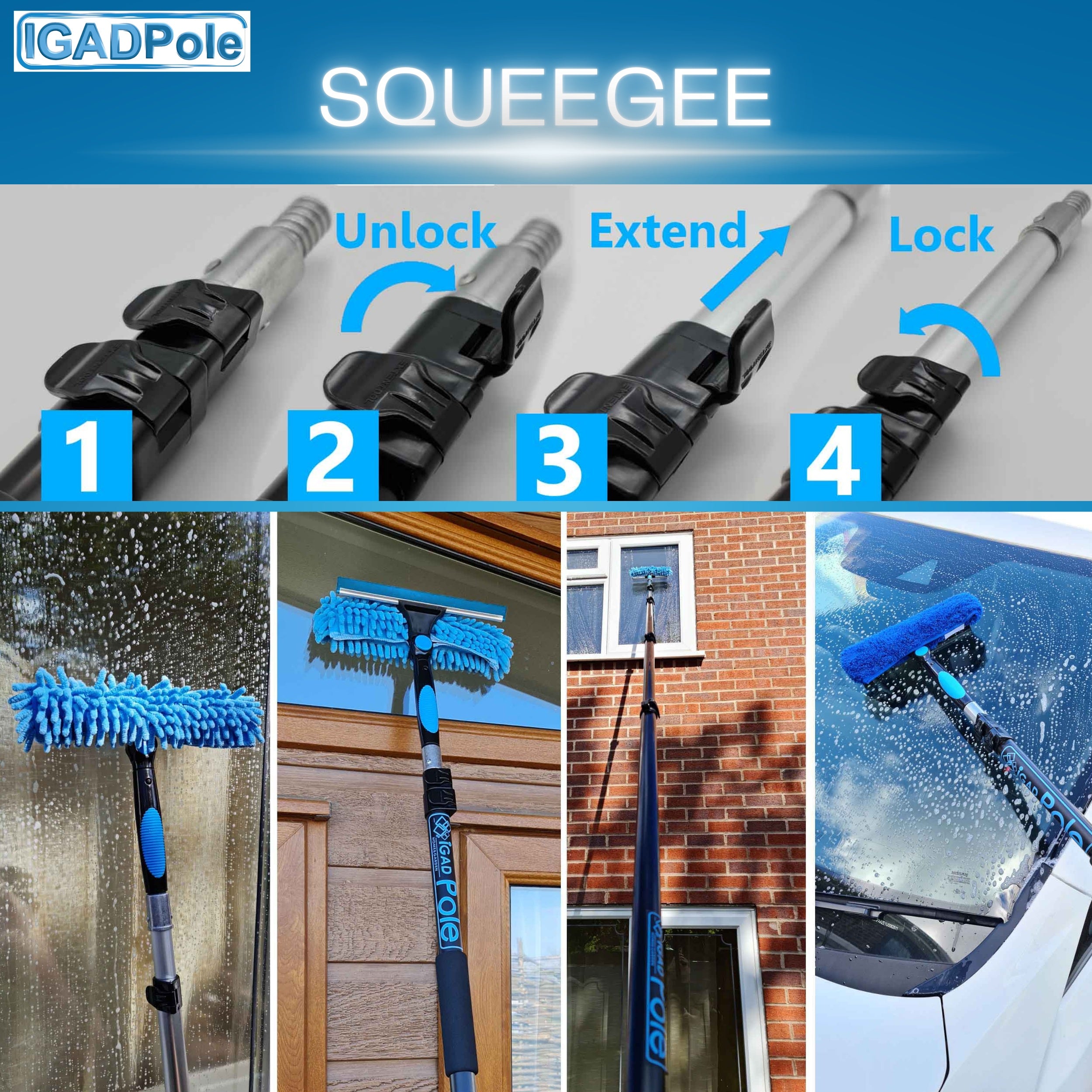 6.6ft Window Squeegee with Extension Pole, Window Cleaner Tool with 2-Stage Telescoping Pole, Window Cleaning Kit with 6.6ft Pole(2m) & Microfiber Cloths, 2 Blades Replacements