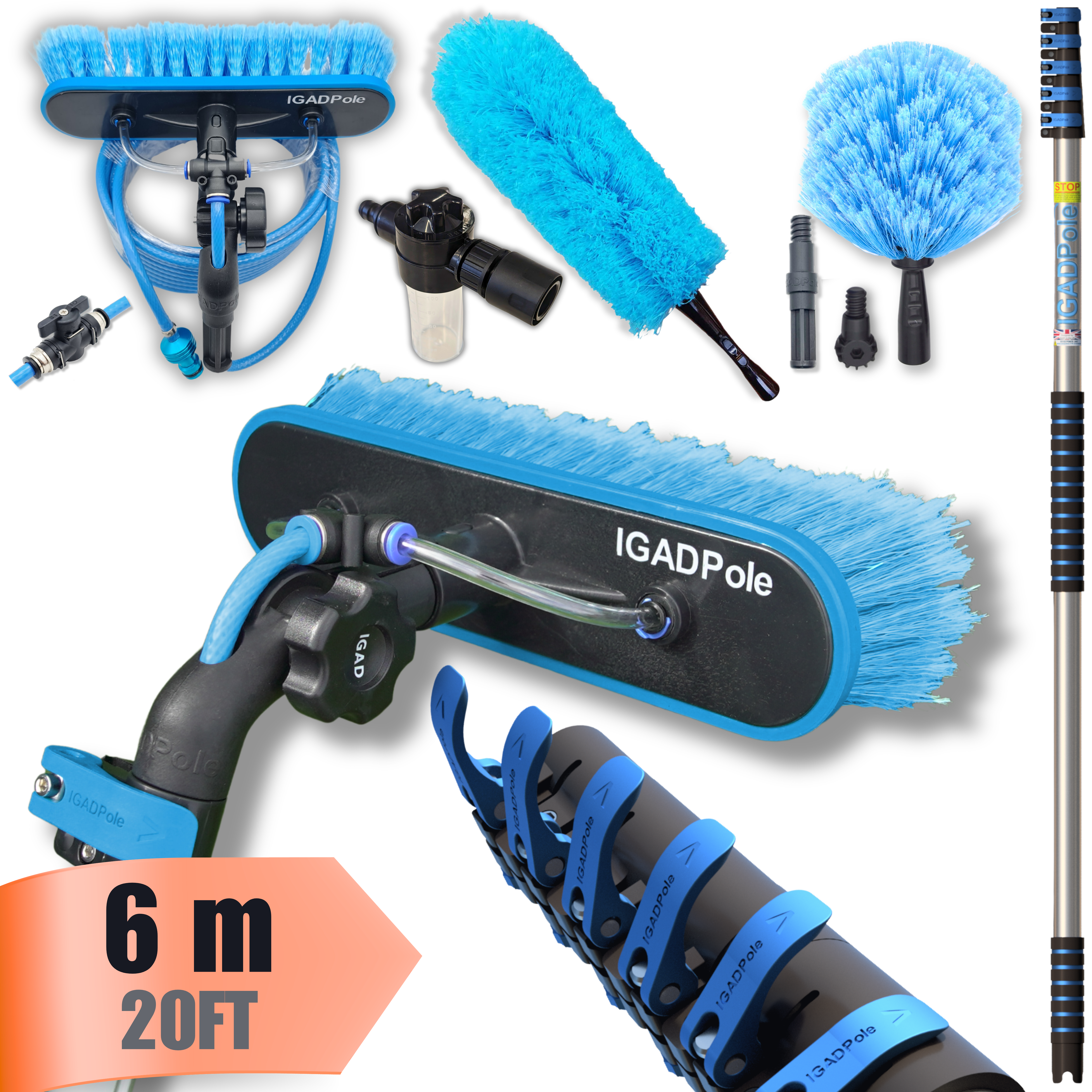 IGAD Pole 6m (20ft) Water-Fed Pole Cleaning Kit – Includes Water-fed Brush, Cobweb & Microfibre Duster, Soap Dispenser & Hose Tap
