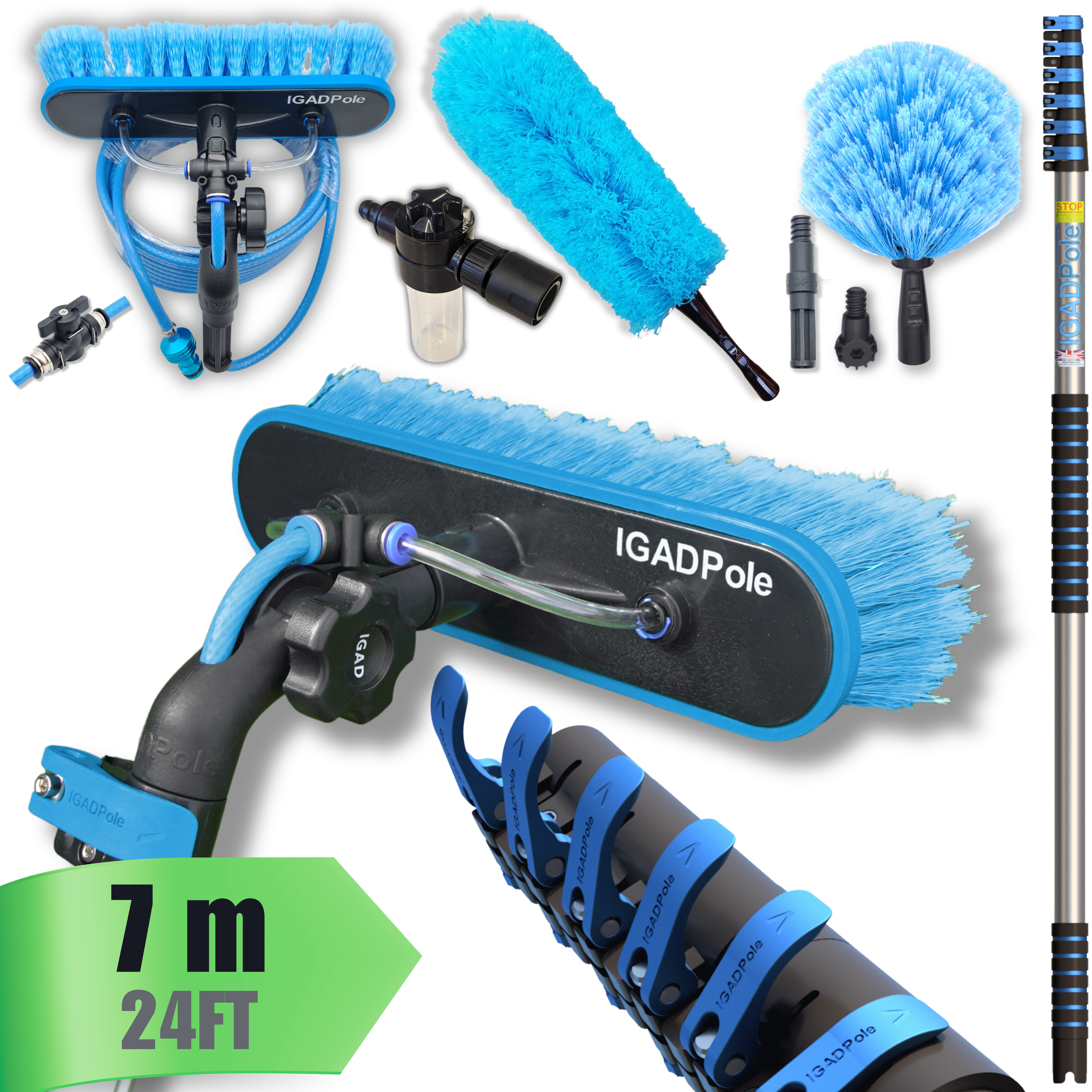 IGAD Pole 7m (24ft) Water-Fed Pole Cleaning Kit – Includes Water-fed Brush, Cobweb & Microfibre Duster, Soap Dispenser & Hose Tap